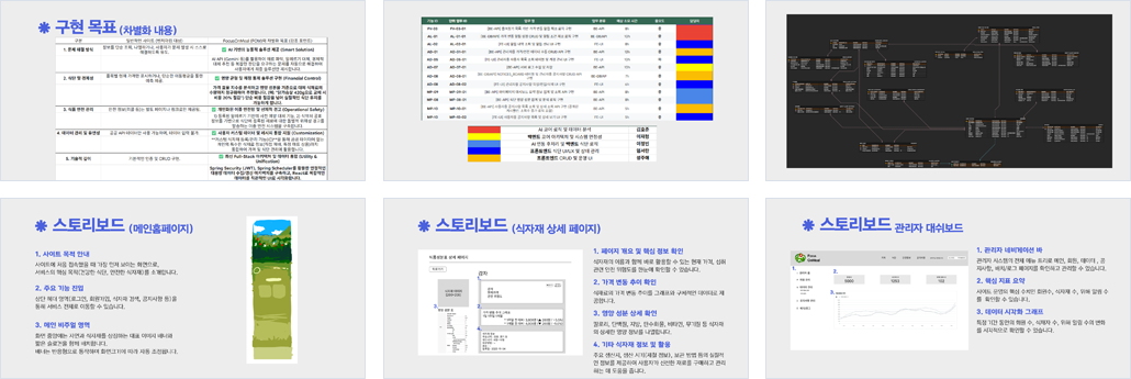 | 팀장/팀원 | 김**(팀장) : 보안 / 인증 - Spring Security 및 JWT 기본 설정, 필터 구축 - 관리자 권한 체크 및 접근 제어 설정 - 관리자 권한 확인 및 라우팅 가드 공공 API 연동 - KAMIS 농산물 가격 API 연동 모듈 구축 - 식품안전정보 API 연동 모듈 구축 - API 수동 동기화 엔드포인트 구현 - API 관리 페이지 UI (동기화 버튼, 상태 표시) - API 동기화 실행 및 결과 표시 로직 - Spring Scheduler 기반 Batch Job 설정 AI 기반 식단 생성 / 분석 - AI API(Gemini) 클라이언트 구축 - 저장된 식단 히스토리 목록/상세 조회 - 식단 상세 모달 및 삭제 처리 - 채팅 메시지 수신 및 AI 응답 생성 로직 구현 - 채팅 상태 관리 및 공공 API 연동 - 식단 저장 테이블 설계 및 Mapper 정의 - 추천 식단 저장 로직 구현 - 알레르기 대체 식단 생성 로직 개발 - 식단 영양 성분 합계 계산 및 분석 로직 구현 가격 및 추천 로직 - 식단 가격 계산 로직 (DB가격 + AI예상가격) - AI 추천 결과와 가격 데이터를 병합하여 제공하는 API 개발 - 레시피 파악, 대체 추천 등 프롬프트 설계 및 고도화 식단 기능 확장 - 저장된 식단 조회 API 개발 - 식단 히스토리 카드 리스트 UI 구현 - 채팅 인터페이스 UI - 식단 결과 카드 및 저장 버튼 UI - 식단 저장 확인 모달 및 처리 로직 알림 기능 - 가격 변동 감지 시 알림 생성 로직 - 알림 드롭다운/페이지 UI |