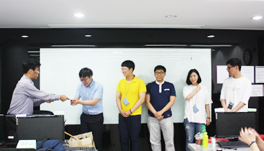 | 박창준 : | 워낙 조원들끼리 친목이 단단하여서 결과가 더 기쁘게 받아 들여 지는 것 같아요. (모두 웃음) 이번 프로젝트를 하면서 어려운 순간도 많았는데 끝나고 나니까 후에 취직을 해서도 프로젝트 등을 할 때 큰 도움이 될 것 같네요. |