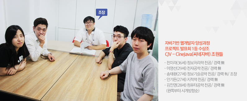 | 송태환 : | 네, 감사합니다. 저희 조는 'CJV'로 Cine와 Java를 합친 'CineJava (씨네자바)' 입니다 |