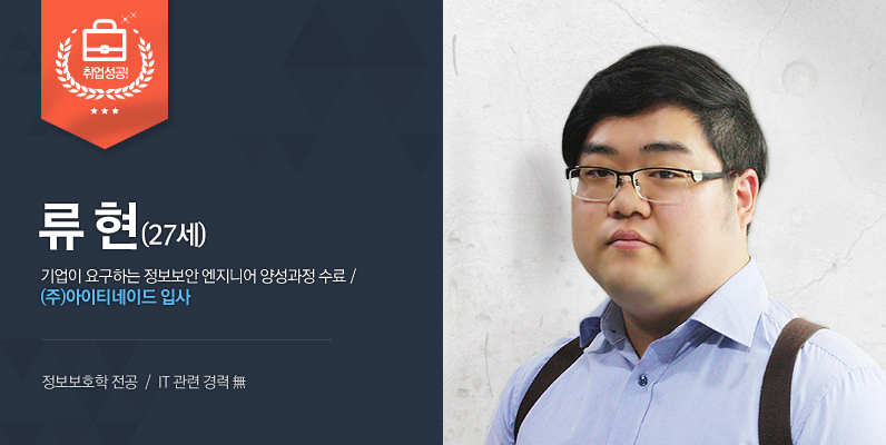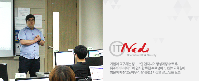 네 감사합니다. 안녕하세요. 저는 KH정보교육원에서 공부했고, 지금은 아이티네이드에 취업을 해서 일을 하고 있는 류현이라고 합니다.