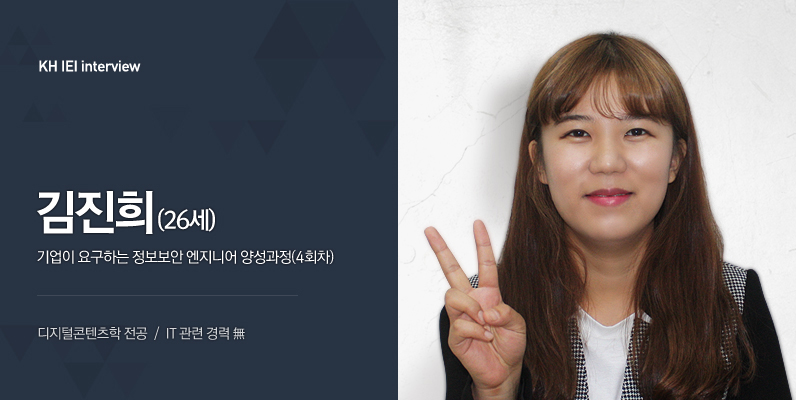 작년에 학교를 졸업했을 때도 진로에 대한 정확한 목표가 없었어요. 1년 동안 취업 준비를 하면서 고민을 많이 했어요. 그러다가 신문 등의 매체에 IT분야와 정보보안이 화두가 되는 것을 보면서 관심을 두게 됐어요. 처음 접하는 분야라 어려울 것 같았지만, 비전이 있어 보여서 공부를 하기로 결심했죠. 어렵긴 해도 배울수록 흥미가 생기고 저와 맞는 분야라고 생각이 들었어요.