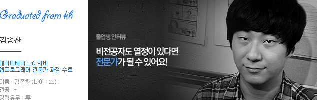 학원 커리큘럼만 열심히 예습, 복습하고 충분히 소화해낼 수 있다면 취업은 어렵지 않을거라 생각합니다.