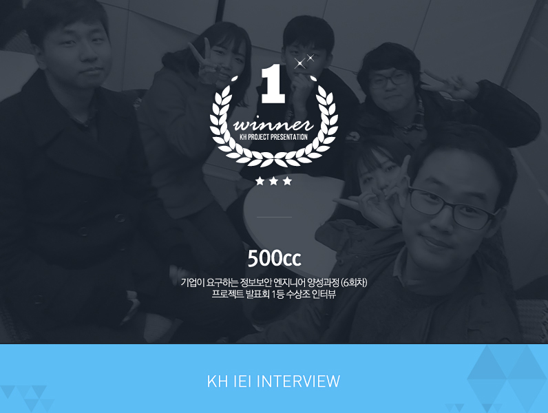 | 진상훈 | 그러면 안 되지만… 프로젝트를 핑계로 모여서 놀았던게 재미있었어요.(웃음) 물론! 공부가 ‘주’였고, 겸사겸사 놀았습니다.(단호) 일주일에 한 번 정도는 회의 겸 유흥을 즐기며 500cc의 의미를 되새겼어요. |