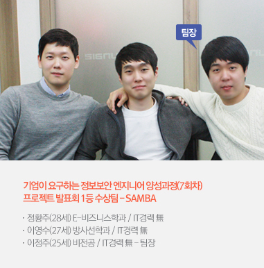 | 이영수 | 딱히 그런 건 아닌데, 보안과정이 저랑 잘 맞았어요. 예전부터 컴퓨터에 관심이 많아서 그런지 공부가 재미있더라고요. |