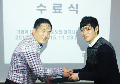아니요. 친구들과는 흥미거리 이야기하기에 바쁘죠.(웃음) 그나마 대학교 후배 중에 한 명이랑은 자주 이야기를 했어요. 지금 같은 반에서 공부하는 친구인데요, 이야기하다 보니 정보보안에 관심 있어하길래 마음이 맞았어요.