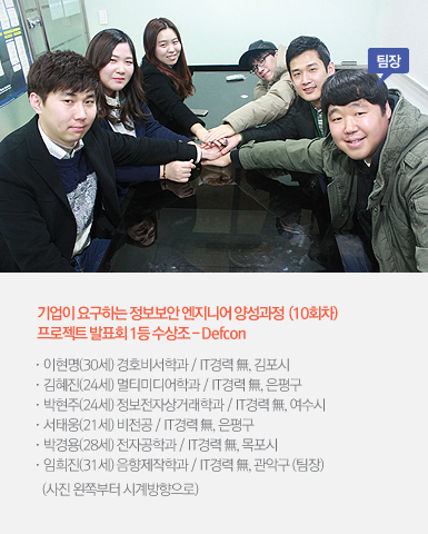 | 박경용 | 데프콘이 군대에서 전쟁에 대비해 발령하는 전투준비태세를 뜻 하잖아요. 보안의 위험성에 대해 조금 더 인지할 수 있게 쎈 팀명을 지었어요.(웃음) |
