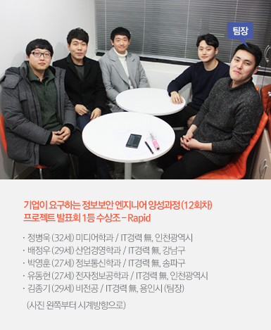 | 배정우 | 다들 좋은데 취업하고, 보안분야에서 인연을 계속 이어나갔으면 좋겠다. 잘 살아라! |