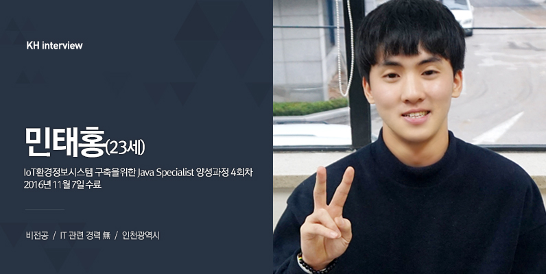 KH정보교육원에서 많이 배웠고, 반 친구들이랑 친해져서 편하게 공부할 수 있었던 것 같아요. 6개월 동안 공부하면서 힘들지 않았다면 거짓말이겠지만, 정말 재미있게 보낸 것 같아요. 끝까지 열심히 해서 나중에 반 친구들과 같은 회사 다녔으면 좋겠어요.(웃음)