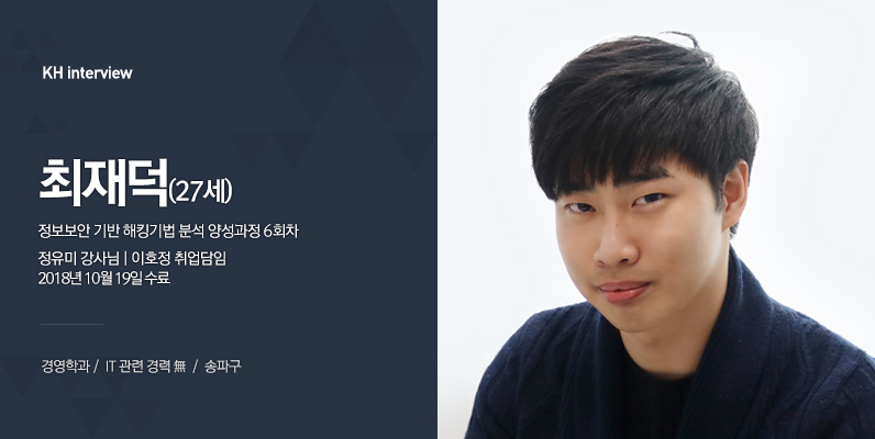 네, 오늘 인터뷰에 응해주셔서 너무 감사드려요. 본격적인 인터뷰를 시작하겠습니다! IT를 교육하는 교육원은 많은데 그중 KH정보교육원을 선택하신 이유가 궁금해요.