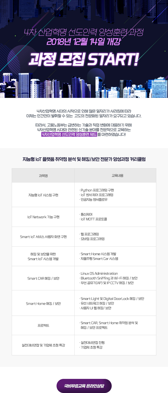 4차 산업혁명 선도인력 양성훈련 과정 모집