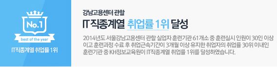 KH정보교육원이 강남고용센터 관할 내 IT직종 계열 중 취업률 1위의 실적을 달성 하였습니다.