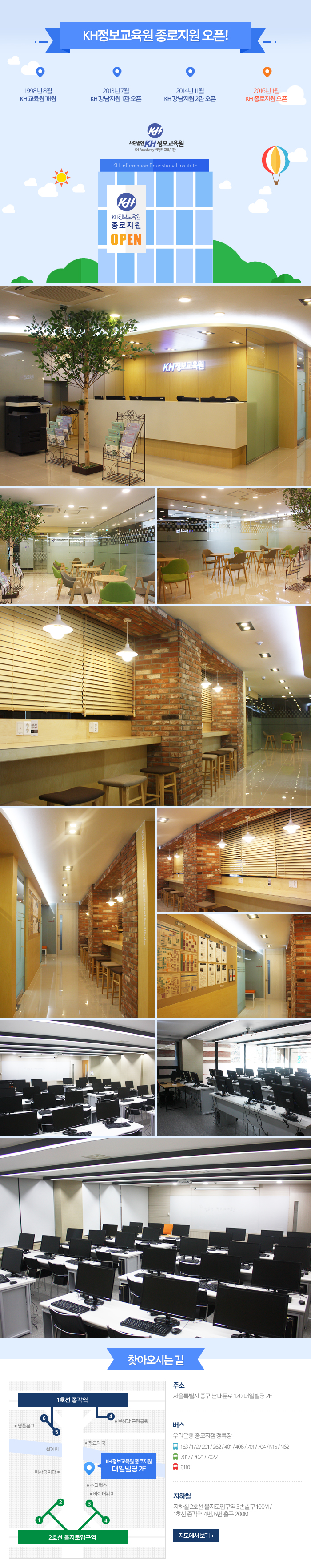 종로점 : 서울특별시 종로구 우정국로2길 21 대왕빌딩 3F, 5F (1호선 종각역 4번 출구 91m 도보 1분 거리)