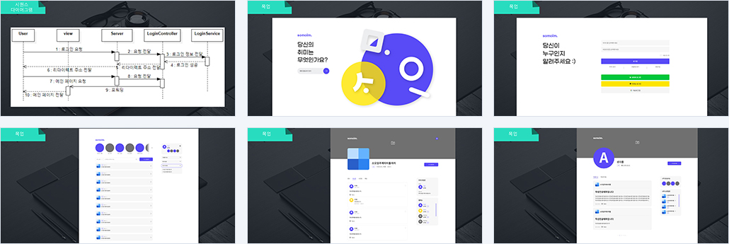| 구현기능 | - 로그인, 회원가입, 로그아웃 - 소모임 메인, 소모임 개설 - 모임 페이지, 모임 게시판, 사진첩 - 유저 정보 - 내 정보 - 소모임 채팅 |