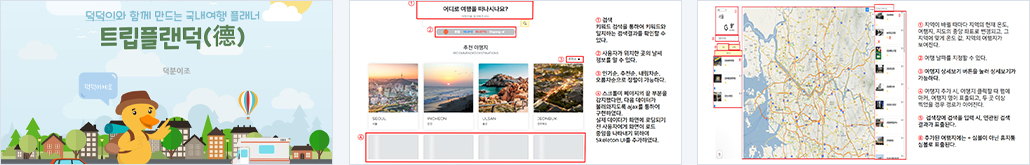 | 개요 | " 조금 더 쉽게 여행 계획을 만들 수 있는 방법은 없을까? " 코로나19로 인한 해외여행의 제약으로 국내여행이 증가되고 인기 관광지 보다는 소규모 관광지, 숨겨진 관광지를 선호하는 여행자가 증가하였습니다. 또한 소규모 여행, 나홀로 여행의 증가 등으로 혼자 여행을 떠나는 이들이 많아졌습니다. 이들이 쉽고 간편하게 여행 계획을 세우고 혹 동행을 구하고 싶다면 동행도 구해서 행복한 국내여행의 기억이 남을 수 있도록 하기 위해 만든 플래너 사이트 |