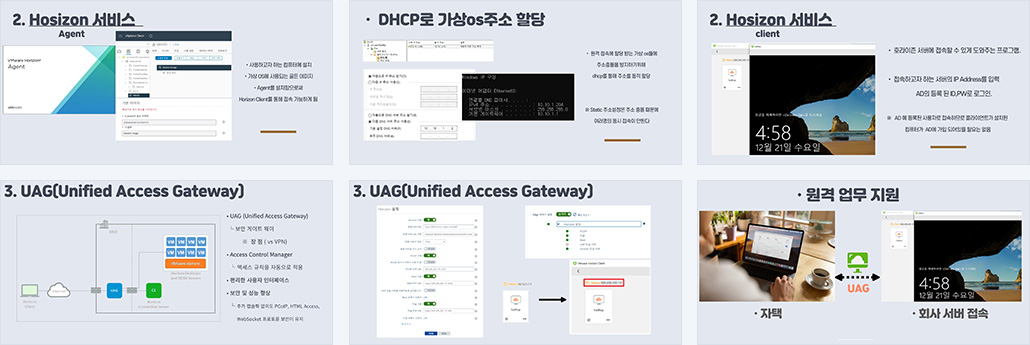 | 설계의 주안점 | VMware 솔루션 기반의 가상데스크톱 환경을 구축하여 사용자에게 보안이 강화된 별도의 업무환경을 제공 |
