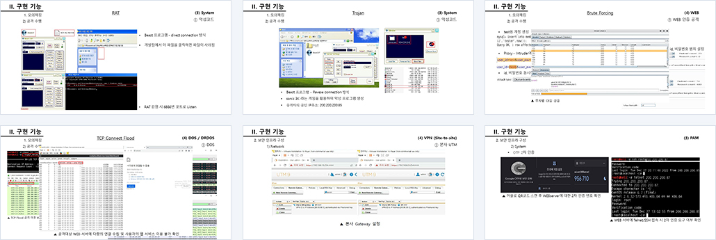 1) OS : Windows 7, Windows 7 Nessus, Windows 10, CentOs6.7, Kail 2022.2, Kali 2016.2 2) Tool : GNS3, Wireshark, VMware Player, VM Virtual Box, Putty, SOPHOS, Untangle, BURPSUITE, SNORT, WAFFLES, UTM, ESM |