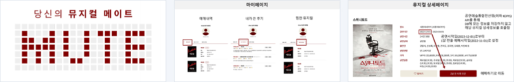 | 개요 | 뮤지컬, 극장 좌석별 정보 및 예매를 할 수 있는 뮤지컬 사이트 |