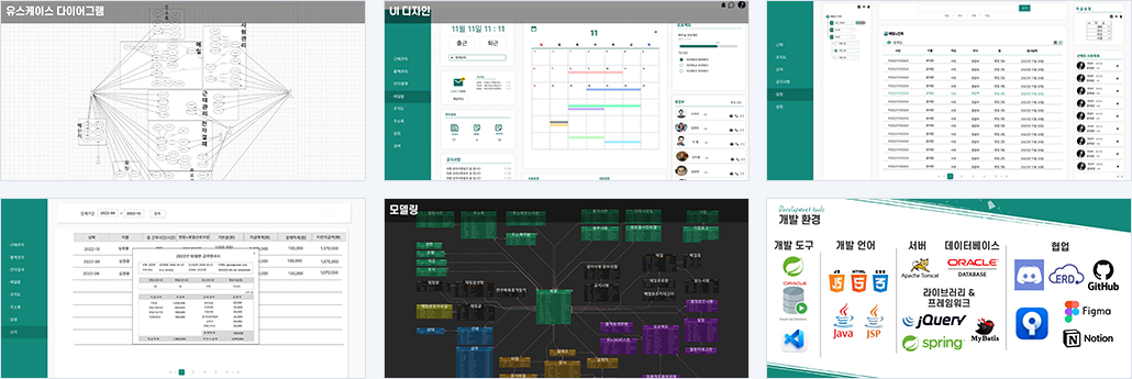 | 설계의 주안점 | 손쉬운 근태관리 간편하게 볼 수 있는 일정관리 업무에 도움이 되는 결재문서 작성 및 처리,메일작성,사내 메신저 사용 간편한 사원관리 |
