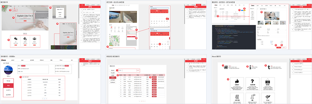 | 박** : 공간대여 상세조회: kakao map API 예약 완료 페이지 관리자페이지: 공간예약 내역 관리, 공간 예약 내역 상세조회, 공간 내역 취소 | |