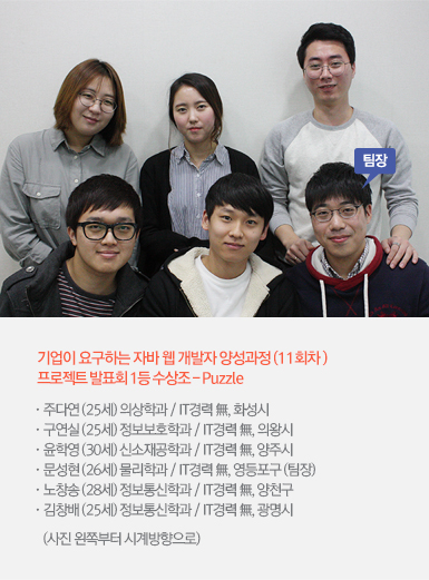 | 주다연 | 각 기능을 하나의 퍼즐 조각이라고 생각하고, 열심히 노력해서 멋진 퍼즐 작품을 완성한다는 의미로 팀 명을 ‘Puzzle’이라고 지었어요. |