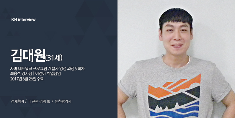 네 안녕하세요! 인천에 사는 31살 김대원입니다. 저는 전공자가 아닌, 경제학과를 졸업한 비전공 수강생이에요.