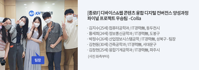 | 황세희 | 2월 3일에 개강했을 때 취업담임선생님께서 저희 강사님 엄청 좋은 분이라고 말씀해주셨는데 그때는 그냥 하는 말이겠지 하고 넘겼어요. 근데 그다음 날부터 본격적으로 수업을 하는데 진짜 너무 잘 가르쳐 주시는 거예요. 제가 유사 전공이기는 하지만 잘 몰랐던 부분을 섬세하게 알려주시고 0이 있으면 0이 왜 그런지부터 기초부터 원리부터 다 설명해주셔서 이해가 잘 됐습니다. |