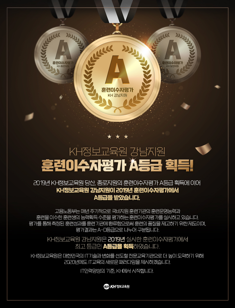 KH정보교육원 강남지원 훈련이수자평가 A등급 획득