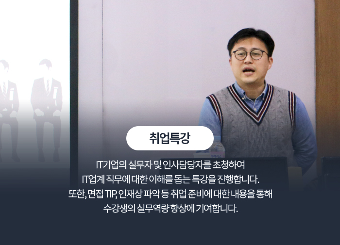 • - 커리큘럼 자문, 기업체 특강, 실전대비면접 면접관으로서 활동