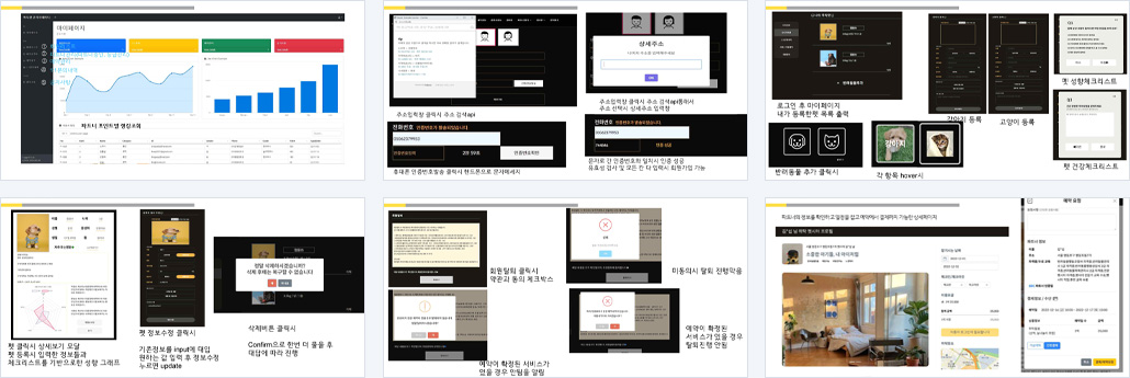 | 구현기능 | 1. 관리자 - 회원관리 - 공지사항 - 예약 관리 - 1:1문의 - 리뷰 관리 2. 파트너 - 파트너 지원 - 예약 내역 관리 - QnA 답변 - 결재 관리 3. 사용자 - 1:1 문의 및 쪽지 - 반려동물 등록 - 예약내역 조회 및 취소 - 돌봄, 산책, 훈련 등 서비스 이용 - 후기작성 |