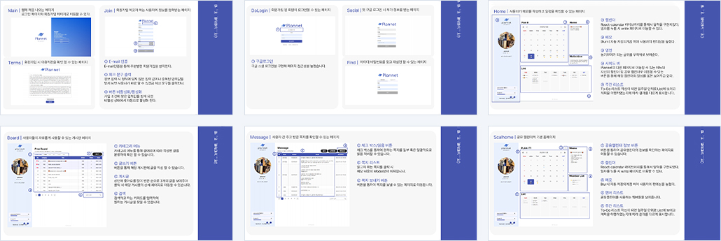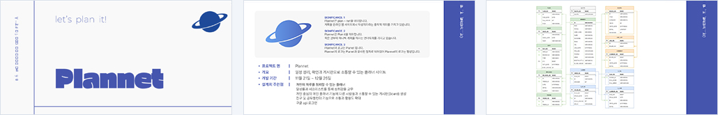 | 개요 | 일정 정리, 확인과 게시판 및 친구끼리의 공유 캘린더로 소통할 수 있는 플래너 사이트 |