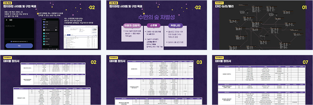 | 설계의 주안점 | - 수면 제품 탐색 용이성 : 사용자가 원하는 상품에 보다 쉽게 접근하기 위해 직관적이고 간편한 검색 및 필터 기능 제공(검색 카테고리, 상품 가격 범위 필터링) - 커뮤니티 기능 강화 : 수면 관련 정보와 팁을 사용자가 공유하게 하여 사이트에 접속하는 것을 매력적이게 하고, 또한 일반 광고가 아닌 우리 쇼핑몰의 광고를 보여주게 하여 커뮤니티 유지 비용 절감 → 쇼핑몰 수익 극대화 - 피드백과 1:1문의처리 : 사용자들의 피드백 적극 수집 및 반영. 또한 1:1문의 사항에 빠르고 정확한 답변을 제공하여 사용자들의 불편 사항을 해결하고 만족도를 높임. - 활발한 할인 이벤트 : 할인된 가격으로 제품에 대한 사용자의 관심과 참여를 유도하고 기간 한정 이벤트를 통해 구매 욕구를 자극. |