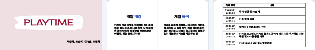 | 개요 | 사용자가 원하는 연극을 빠르게 검색하고 예매할 수 있고, 리뷰 게시판을 통해 다른 사람들의 평을 볼 수 있는 서비스를 제공하는 사이트 |