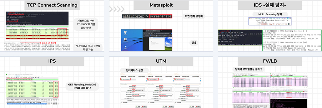 | 구현기능 | [모의해킹] 1. 모의해킹 방식 - White Box Testing 2. 수동적 정보수집 1) DNS정보수집 (1) Zone Transfer (2) Dictionary Attack 2) 경로추적 (1) traceroute 3. 능동적 정보수집 (1) Active Host Scanning (2) Port Scanning (3) Vulnerability Scanning - Nessuse 4. 공격 수행 1) Metasploit 2) Network (1) Sniffing - ARP Spoofing - ICMP Spoofig - DHCP Attack - Remote Sniffing (2) Spoofing - IP Spoofing - DNS Spoofing / DNS Cache Poisoning (3) Hijacking - TCP session Hijacking : hping3 3) System (1) 악성코드 - Ransomeware, Backdoor (2) PW Cracking - john-the-ripper, Hydra 4) WEB Application (1) 정보수집 - Fingerprinting , WEB Spidering (2) Bypassing Client Side Validation (3) WEB 인증 공격 - Brute Forcing - Dictionary Attack (4) WEB 세션 공격 - Fixation, Hijacking (5) Cross Site Scripting - Stored. Reflected (6) Cross Site Request Forgery - Stored, Reflected (7) SQL Injection - 인증우회 - Non-Blind SQL Injection(Querv Result / Error Based) - Blind SQL Injection (Boolean Based Time Based) (8) Directory Listing (9) File Upload / Download 취약점을 활용한 공격 (10) SSL Attack - SSL Mitm, SSL Strip 5) DOS / DDOS / DRDOS (1) DOS - UDP Flooding,ICMP Flooding,Syn Flooding.TCP Connect Flood (2) DDOS - UDP Flooding,|CMP Flooding, TCP Connect Flood,GET Flooding, Hulk Slow HTTP POST / Header / read DOS (3) DRDOS - ICMP Flooding [보안 인프라 망 구축] 1. Network 1) Hierarchical 3 layer 모델을 기반으로 Network 토폴로지 설계 2) User Zone, ServerFarm, DMZ Network 망분리 3) NW 장비 기본 설정 4) Interface Network 정보 설정 5) Routing : Dynamic Routing : OSPF 6) NAT 7) NW 장비L2 / L3 / L4) 이중화 2. System 1) rsyslog 2) logrotate 3) Go Access 4) PAM (goolge OTP 설정) 5) SELinux 6) Tripwire 3. Service 1) DNS & DNSSEC 2) WEB 3) DBMS Replication 4) Secure Coding 4. 보안 시스템 1) IDS 2) IPS 3) NAC 4) WAF 5) UTM 6) L4 Switch 7) VPN 8) ESM |