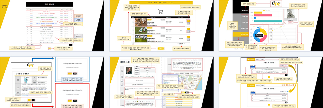 | 설계의 주안점 | - 여러 종류의 카테고리들이 온라인강의와 오프라인모임들로 나뉘어져 있습니다 - 심플한 디자인으로 각 메뉴들의 직관성이 뛰어납니다 - 다양한 소셜로그인 시스템 - 자유로운 게시판 - 강의실을 통해 회원과 강사와의 소통이 가능합니다 - 관리자의 체계적인 관리 시스템으로 사고를 미연에 방지 및 추후 통제 |