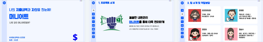 | 개요 | 얼마나 버는가보다 어떻게 관리하는 가가 중요합니다. 나의 지출내역과 자산을 한눈에 볼 수 있는 가계부! |