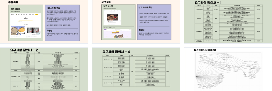 | 설계의 주안점 | Woofly는 위치를 기반 서비스를 중심으로 애견시설을 추천하며 다양한 커뮤니티 게시판을 통해 실종 신고, 도그워커 구인,산책 메이트 구인, 산책 메이트 구인 중고 거래 서비스를 이용할 수 있습니다. 또한, 매 주 열리는 개통령 컨테스트는 사용자들의 큰 흥미를 이끌며 운영자 또한 이러한 컨테스트를 통해 쇼핑몰 상품과 연계지어 마케팅을 할 수 있습니다. |