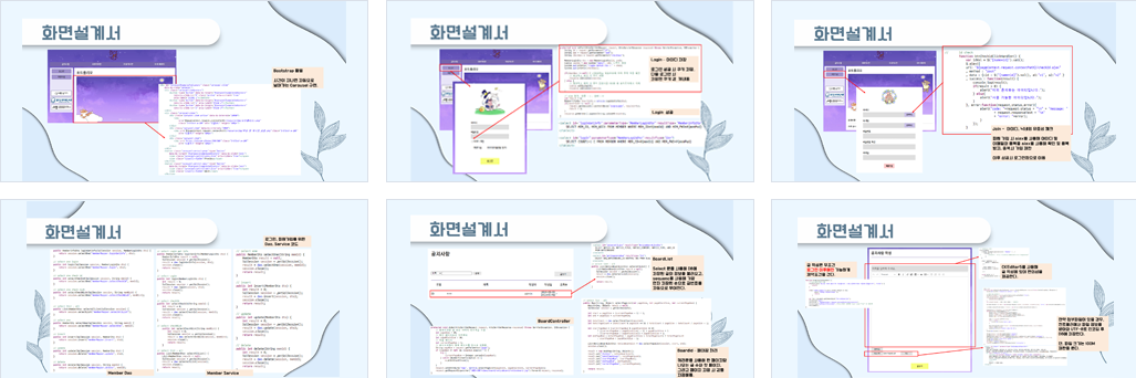 | 설계의 주안점 | - 어렵지 않게 직관적인 설계 - 공지사항과 같은 일반 사용자가 접근할 수 없는 게시판은 일반 사용자 접근 제한 - 열람은 누구나 가능하게, 글쓰기는 회원만 쓸 수 있게끔 처리 - 필요한 개인정보는 최소화 -- 계획 잘 못지킴을 드러냄. -이메일 중복 제한 안둠. 그럼 한명이 여러 아이디 생성 가능 -- 개인적인 글상자.. 다시 캡쳐 - 코드 쭉 써두는거 의미 앖음. 설명도 넣어야 함. 못한거 위주로 말했는데.. 된것만 얘기해도 됨. 오타 잘 찾기 - 찾기 시간 줄이기 - ctrl h 파라메타 반대로 넣기 중간에 바꾸기.. - 회사가서 너무 |