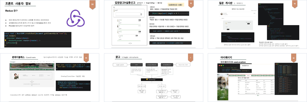 Front-End : HTML & CSS, ES6, React, Redux, Router, StyledComponents Back-End : SpringBoot, JPA, QueryDSL, MySQL Tool : Visual Studio Code, IntelliJ, GoogleDrive, Slack, Github |