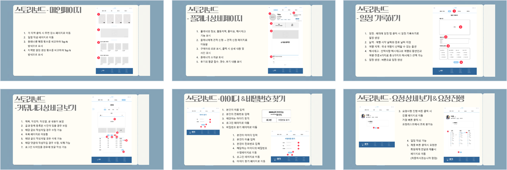 | 설계의 주안점 | - 플래너와 1:1 매칭으로 여행 플랜 판매 및 구매 기능 구현 - 포인트 충전하여 사이트내에서 실제 현금처럼 사용하는 기능 구현 - 직접 여행 플랜을 작성하는 기능 구현 - 여행 주제에 맞는 동행, 양도, 후기 게시글 기능 구현 - 분류에 맞는 관광지 검색 기능 구현 |