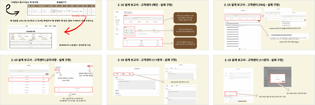 | 개요 | - 오프라인 및 온라인 매장 통괄 관리를 통한 구매 의욕 확보 - 도서 토크 게시판(자유게시판)을 통한 자연스러운 도서 추천 시스템으로 구매 욕구 증가 |