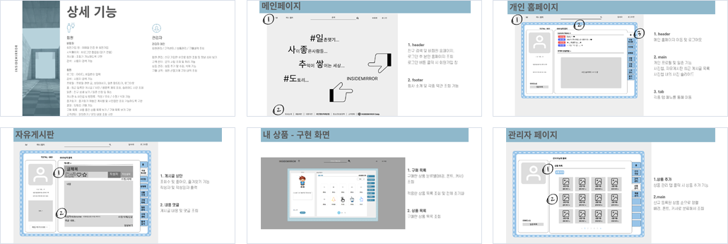 | 구현기능 | - 비회원 회원가입 창 : 이메일 인증 후 회원가입 시작페이지 : 비로그인 팝업창 (읽기 전용) 게시물 : 조회만 가능하도록 구현 - 회원 로그인 : 아이디, 비밀번호 입력받기 프로필 : 프로필 관련 글, 상태 메세지, 일촌 파도타기, 로그아웃, 탈퇴 홈 : 최근 등록한 게시글 / 사진 / 방명록 제목 조회, 슬라이드 사진 조회 일촌 관리 : 친구 상세 보기 / 친구 추천 왔을 시 (요청, 대기, 알림) 구현 게시판 & 사진첩 & 방명록 : 작성 / 조회 / 수정 / 삭제 기능 즐겨찾기 : 즐겨찾기 해 놓은 게시물만 조회 가능하도록 구현 결제 : 도토리를 살 수 있도록 구현 구매 목록 : 사용 중인 목록 보기 / 구매 목록 보기 구현 고객센터 : 문의하기 / 문의 내용 조회 구현 - 관리자 - 회원 관리 : 신규 가입한 순으로 회원 조회 / 상세 보기 - 고객 센터 : 문의 사항 조회 및 처리 가능하도록 구현 - 상품 관리 : 상품 작성 / 조회 / 수정 / 삭제 가능하도록 구현 - 신고 내역 : 게시글 신고 내역 조회 / 처리 가능하도록 구현 - 매출 현황 : 총매출 그래프로 조회 / 목표 매출 작성 / 상품별 매출 현황 조회 |