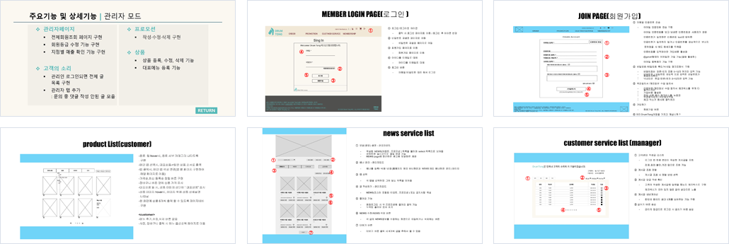 | 설계의 주안점 | - 사무실에서 일하거나 과제를 하면서 쉽게 웹사이트 상에서 대용량 음료를 이용할 수 있도록 구현 - 대표 상품을 편하게 볼 수 있도록 배치 - 고객글에 대한 관리자 답변을 고객평가를 통해 진단 - 프로모션을 통한 고객반응 평가 - 주문 지점을 지도에서 쉽게 선택 |