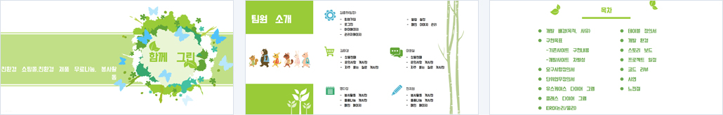 이에 사용자의 보다 편한 접근을 위해 친환경 물품 구매, 환경 봉사활동, 물품 나눔 기능을 묶어서 제공하였다. |
