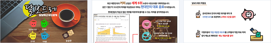 - 달보드레 사이트에서 전국의 매장 위치를 파악 후 사이렌 오더로 주문하여 고객의 시간을 절약하고 포인트가 적립된다.