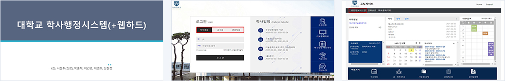 이 사이트를 사용하는 사용자들이 실제 대학이라고 착각할정도의 리얼리티한 UI 및 기능 구성에 주안점을 두었습니다. |