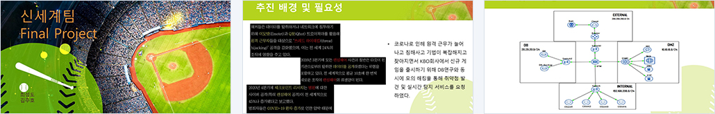 - WAF,UTM을 사용해 Server에 대한 보안 솔루션을 제공