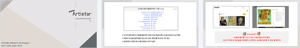미술에 흥미를 가지고 있는 사용자들과 화가들이 자신의 작품 및 정보들을 자유롭게 소개하며, 정보를 공유할 수 있는 웹페이지 |
