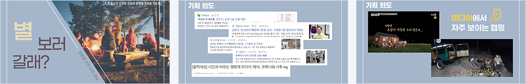 - 코로나로 인해 관심이 높아진 취미에 대해 만드는 게 목적이었습니다. 캠핑 예약 정보를 제공할 뿐더러, 캠핑 팁, 캠핑 후기, 중고 거래, 상품 판매 등 캠핑에 관련된 사이트입니다. |