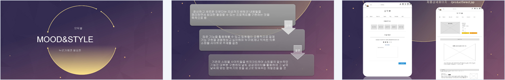 의류 판매 사이트라는 기본에 최대한 충실하도록 설계 의류 판매 사이트에 들어가야할 필수적인 기능들의 구현은 물론이고, 제품-주문-결제-리뷰 간 기능을 면밀하게 이어 사용자가 사용시 위화감 없이 자연스럽게 페이지를 이용하는데 중점을 둠 |