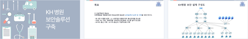 수행 범위 본-신관 L3스위치 이중화설계, 방화벽(UTM, IPS)구축, HTTPS 통신 구축, EMR 서버 취약점 보완, WEB 서버 취약점 보완